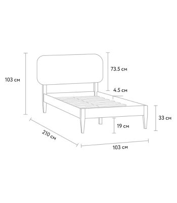 Kích thước 210 x 123 x 103 cm, dễ bố trí trong nhiều không gian. Đầu giường bọc vải dày, tạo điểm tựa thoải mái. Các cạnh giường bo tròn, tăng độ an toàn. Kết cấu giường vững chắc, phù hợp sử dụng lâu dài. Chất liệu gỗ ghép giúp hạn chế cong vênh. Vải bọc mang lại cảm giác êm ái khi sử dụng.