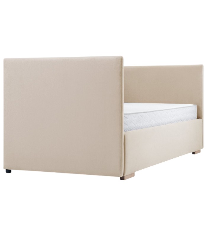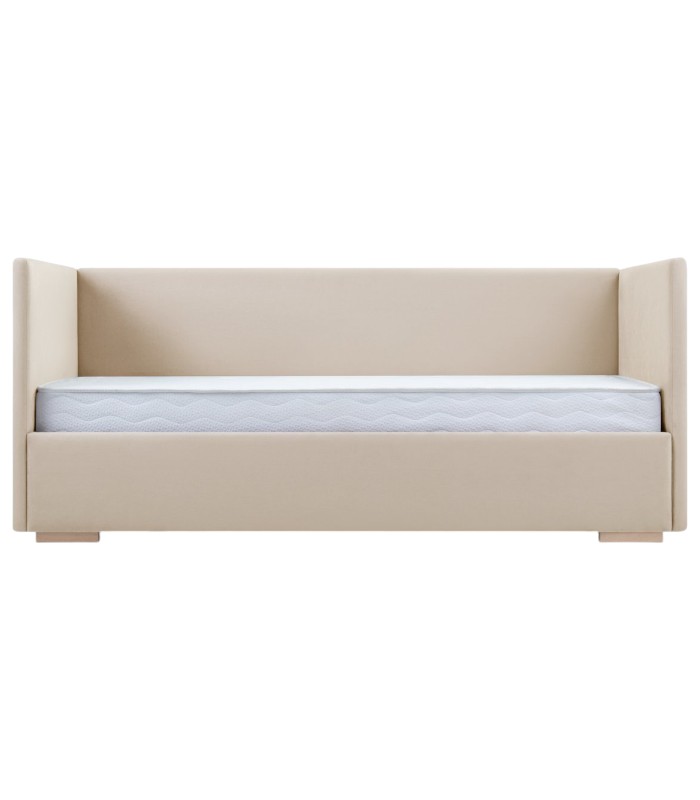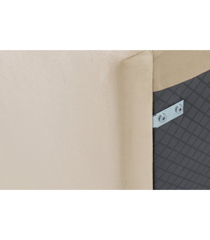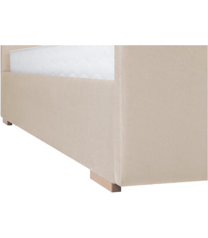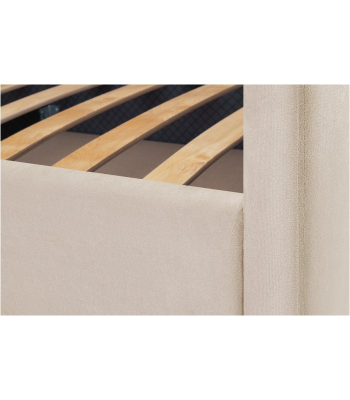 Bề mặt giường được bọc hoàn toàn bằng vải nhung Light mềm mượt, đem lại cảm giác chạm êm ái và ánh sáng nhẹ nhàng, làm nổi bật vẻ sang trọng nhưng vẫn thanh thoát. Từng đường may, góc bo và lớp bọc đều được hoàn thiện tỉ mỉ bởi đội ngũ thợ lành nghề, giúp tổng thể giường gọn gàng, hài hòa và tinh tế trong mọi chi tiết.