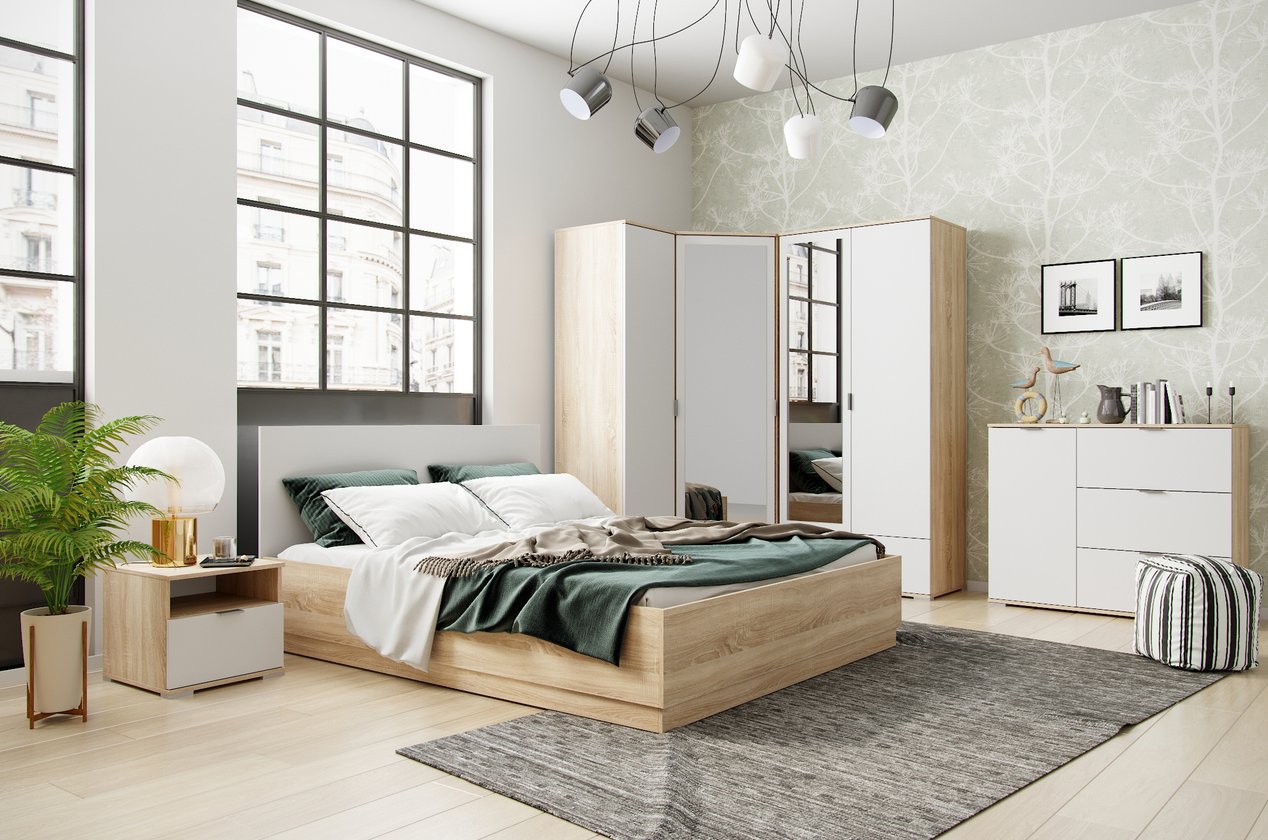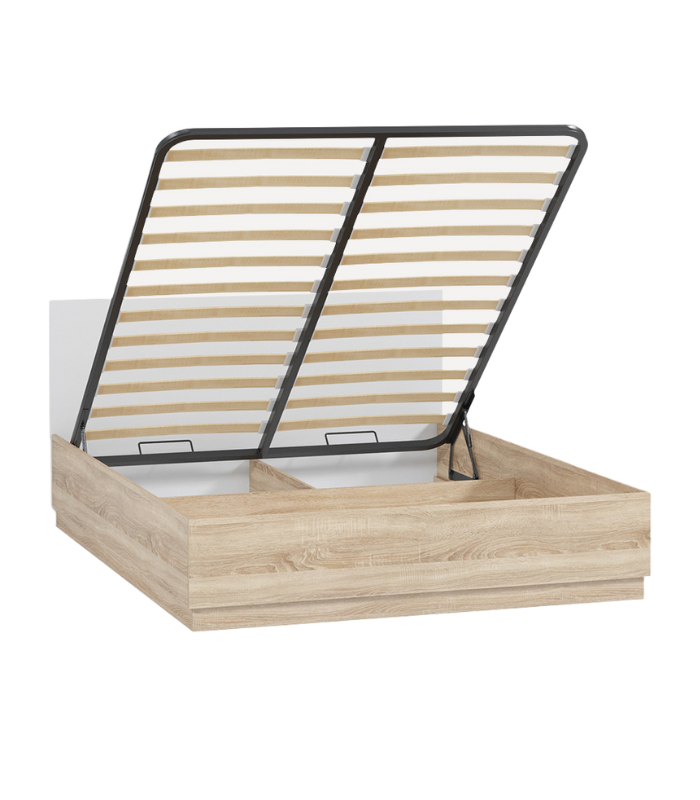 Kích thước này lý tưởng cho hai người lớn, tạo không gian nghỉ ngơi rộng rãi, dễ chịu. Bề mặt phủ melamine mịn, có khả năng chống ẩm và chống bám bụi hiệu quả. Vân gỗ sồi tự nhiên giúp căn phòng trở nên gần gũi và ấm cúng hơn, đặc biệt khi kết hợp cùng ánh đèn vàng. Khung giường chắc chắn, dễ lắp đặt, phù hợp cho mọi không gian từ nhà phố đến căn hộ hiện đại. Các đường bo nhẹ ở góc tăng tính an toàn và thẩm mỹ. Chân giường thấp, giữ thế ổn định và tạo dáng liền mạch, thanh thoát.