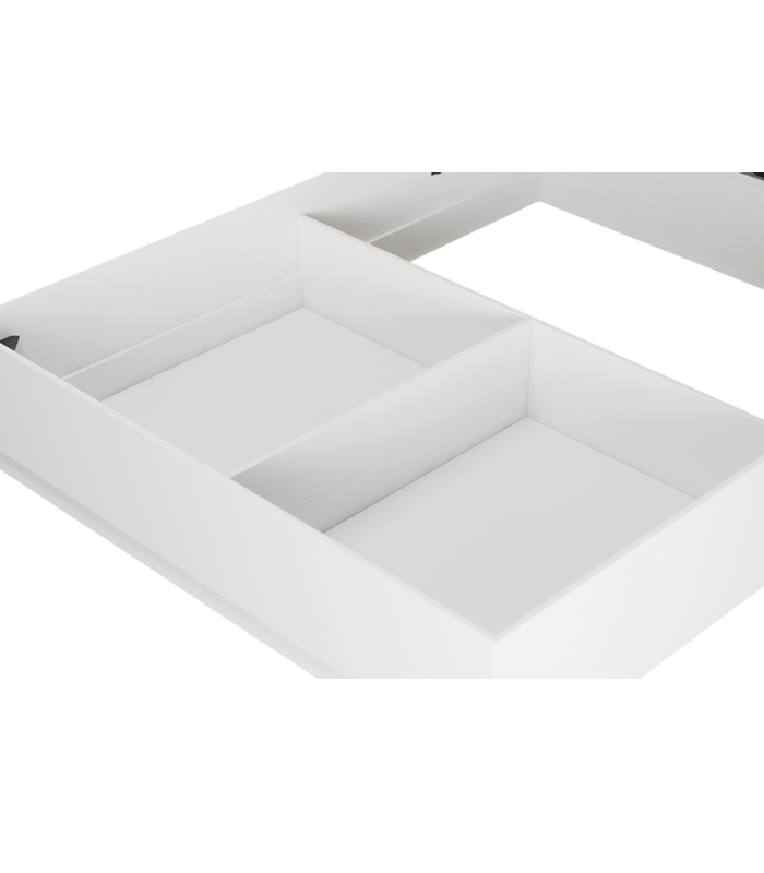 Bề mặt phủ melamine giúp chống trầy xước, dễ vệ sinh và giữ được vẻ sáng bóng lâu dài. Cấu trúc khung chắc chắn, chịu lực tốt, mang lại cảm giác an tâm khi sử dụng. Màu trắng tinh khôi kết hợp cùng tông gỗ sáng hoặc pastel sẽ khiến căn phòng thêm phần hài hòa và nhẹ nhàng.