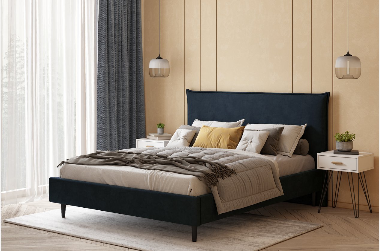 Khung giường kích thước 212 × 168cm mang lại diện tích nghỉ ngơi thoải mái cho hai người, đảm bảo sự rộng rãi mà vẫn giữ được tính cân bằng và chắc chắn. Hệ chân gỗ cao giúp tổng thể thanh thoát, đồng thời tạo không gian thông thoáng phía dưới để dễ vệ sinh. Các đường nét bọc vải được hoàn thiện tỉ mỉ, giữ cho giường luôn sắc sảo và bền đẹp theo thời gian.