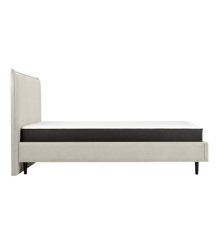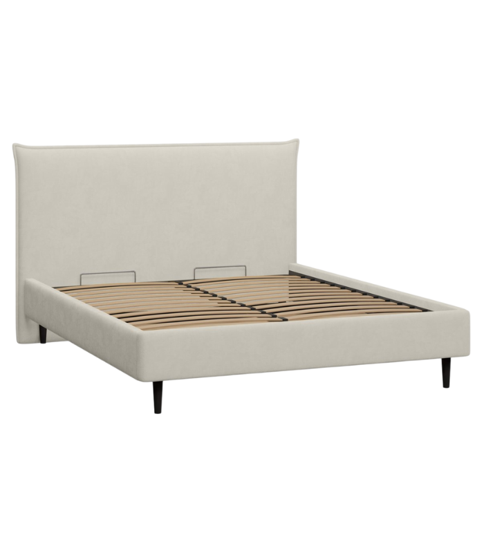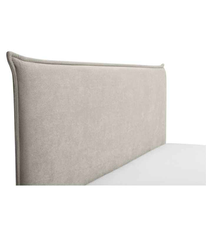Đầu giường cao, bo góc mềm mại tạo điểm nhấn thanh thoát và giúp việc tựa lưng trở nên thoải mái hơn. Khung giường với kích thước 212 × 188cm rộng rãi, mang lại không gian nghỉ ngơi thư thái cho hai người.