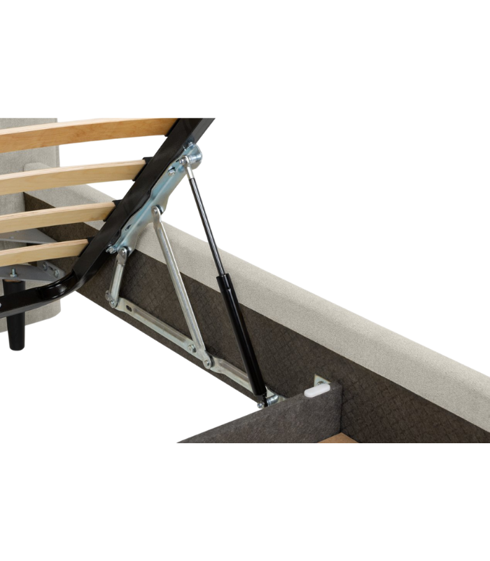 Các đường may sắc sảo giúp giường giữ form lâu dài và tăng sự sang trọng cho thiết kế. Phần chân giường cao tạo cảm giác thanh thoát và dễ dàng lau dọn phía dưới. Về công năng, mẫu Swout được trang bị cơ chế nâng hạ, hỗ trợ mở khoang chứa một cách nhẹ nhàng mà không cần dùng quá nhiều lực. Khoang chứa rộng rãi cho phép lưu trữ chăn, drap hoặc các vật dụng cồng kềnh khi không sử dụng.