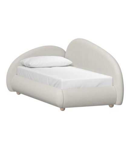 Thiết kế giường được tạo hình bởi những đường cong liền khối, ôm gọn quanh đệm, giúp tổng thể trở nên gọn gàng và an toàn khi sử dụng. Thành giường cao vừa phải, bo tròn toàn bộ mép cạnh nên phù hợp cho gia đình có trẻ nhỏ. Kiểu dáng không chỉ đẹp mắt mà còn giúp chiếc giường trở thành điểm nhấn tự nhiên trong không gian nội thất mang phong cách hiện đại, Scandinavian hoặc Japandi.