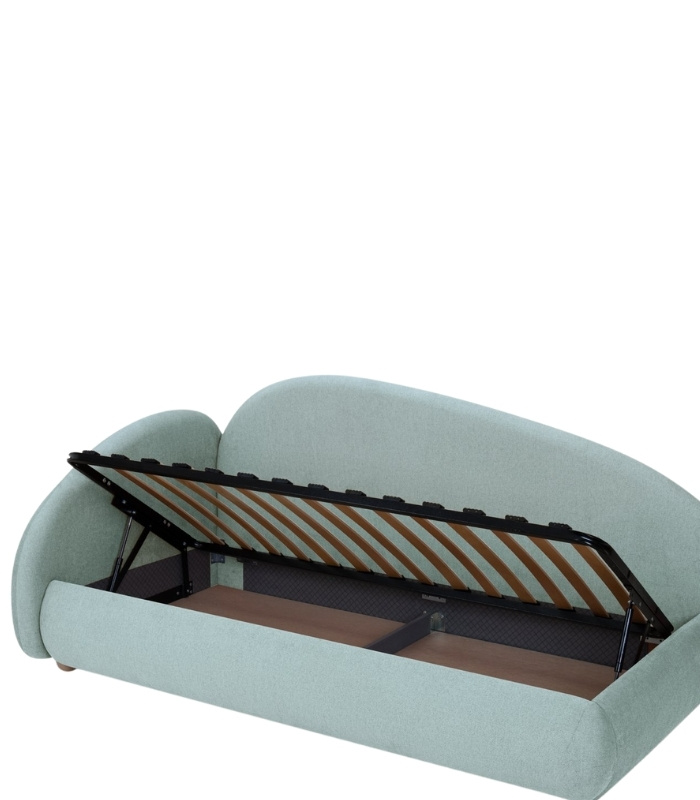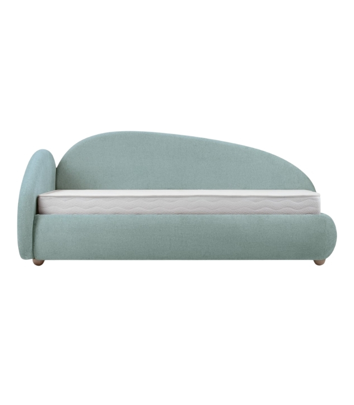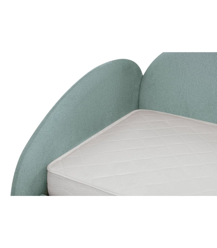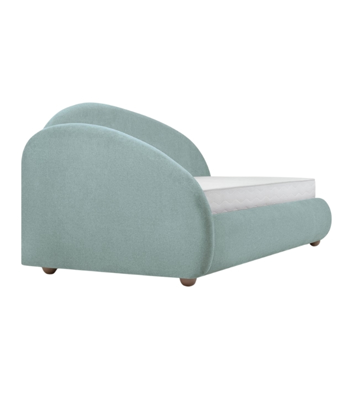 Những đường cong lớn ôm trọn từ đầu giường đến cạnh giường tạo nên vẻ êm ái, an toàn và thân thiện. Dù nhìn từ góc nào, giường Tabia Soft Mint cũng mang cảm giác dễ chịu, mềm mại, không có cạnh sắc. Điều này đặc biệt tốt cho gia đình có trẻ nhỏ hoặc phòng bé thích phong cách dịu nhẹ.