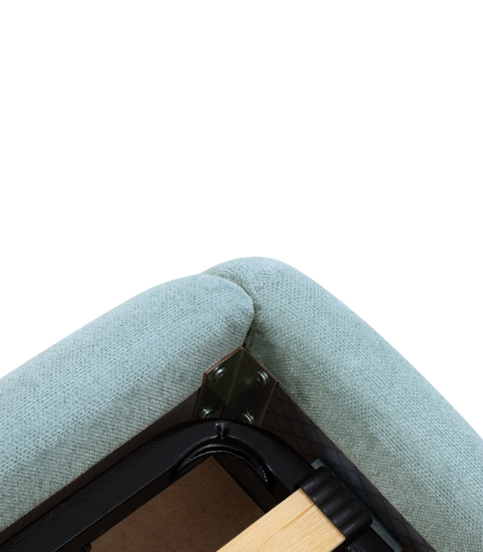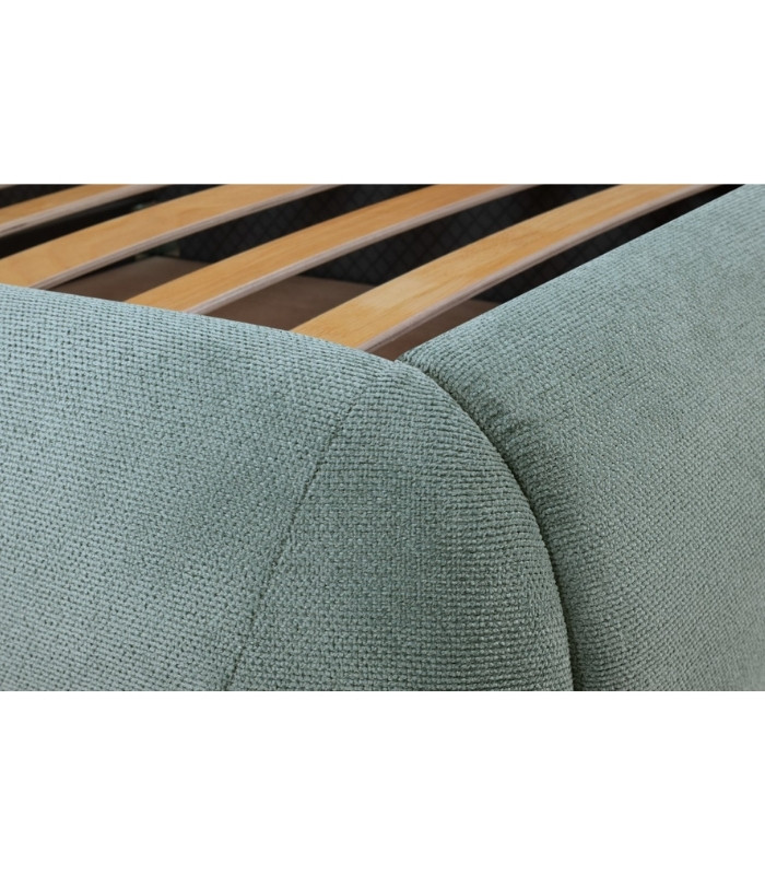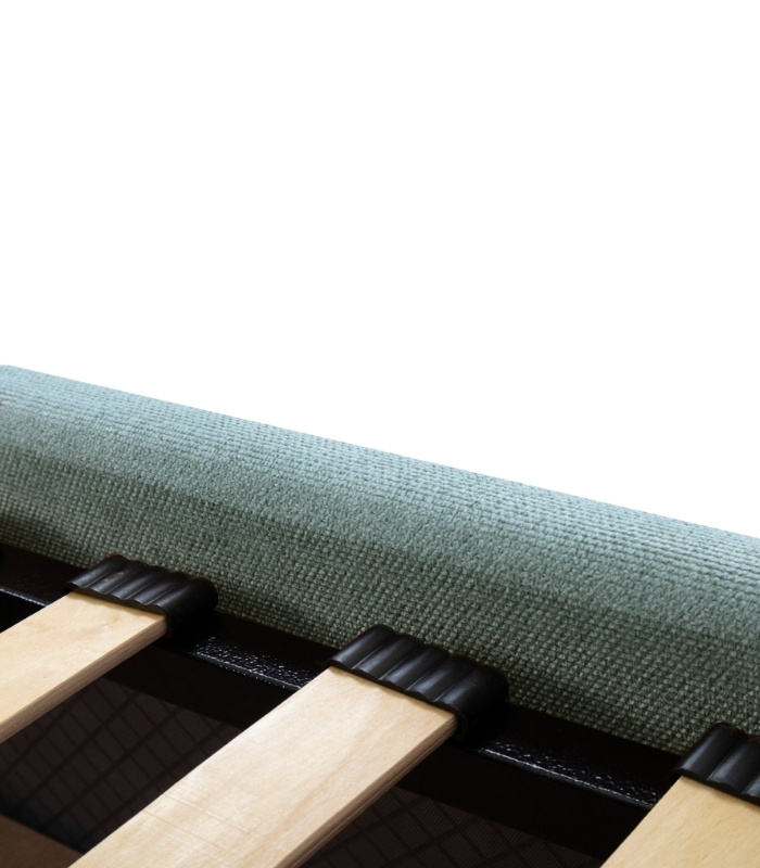 Chất liệu vải Soft Mint có độ đàn hồi và độ bền cao, sắc xanh ổn định theo thời gian. Khung giường và hệ nan được gia công chắc chắn, đảm bảo sự ổn định trong quá trình sử dụng hàng ngày. Phần bo cong được thợ xưởng xử lý rất kỹ, tạo cảm giác liền mạch và sang hơn so với các mẫu giường vải phổ thông.