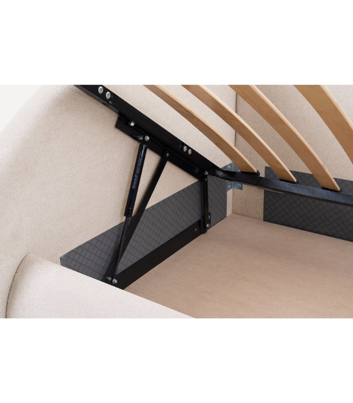 Phần hộc lưu trữ rộng bên dưới giường cho phép sắp xếp chăn ga, vali nhỏ hoặc đồ theo mùa một cách gọn gàng. Cơ chế nâng hạ trơn tru hỗ trợ thao tác nhẹ nhàng, phù hợp cả với người lớn tuổi. Khi đóng lại, hộc chứa hoàn toàn kín đáo, giữ cho tổng thể giường gọn và đẹp trong mọi góc nhìn.