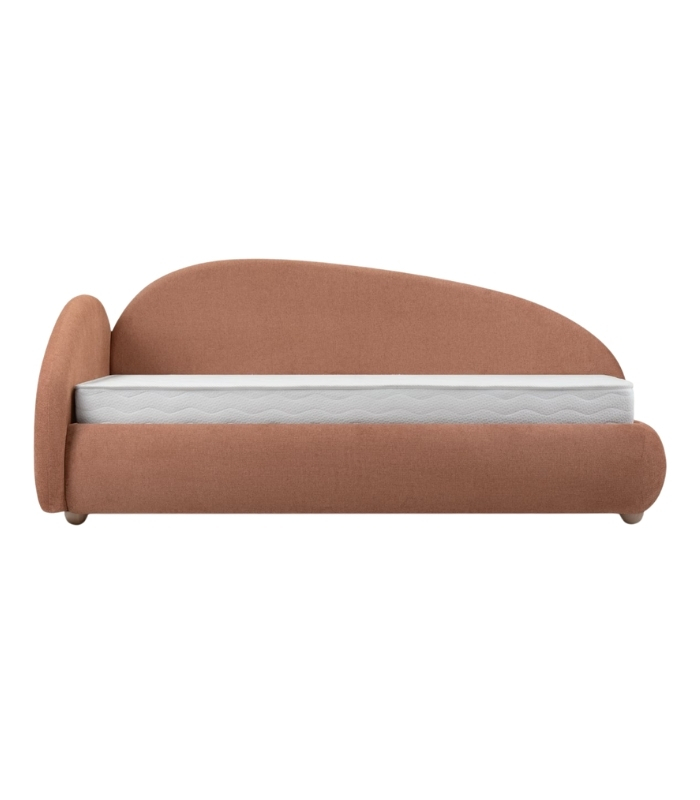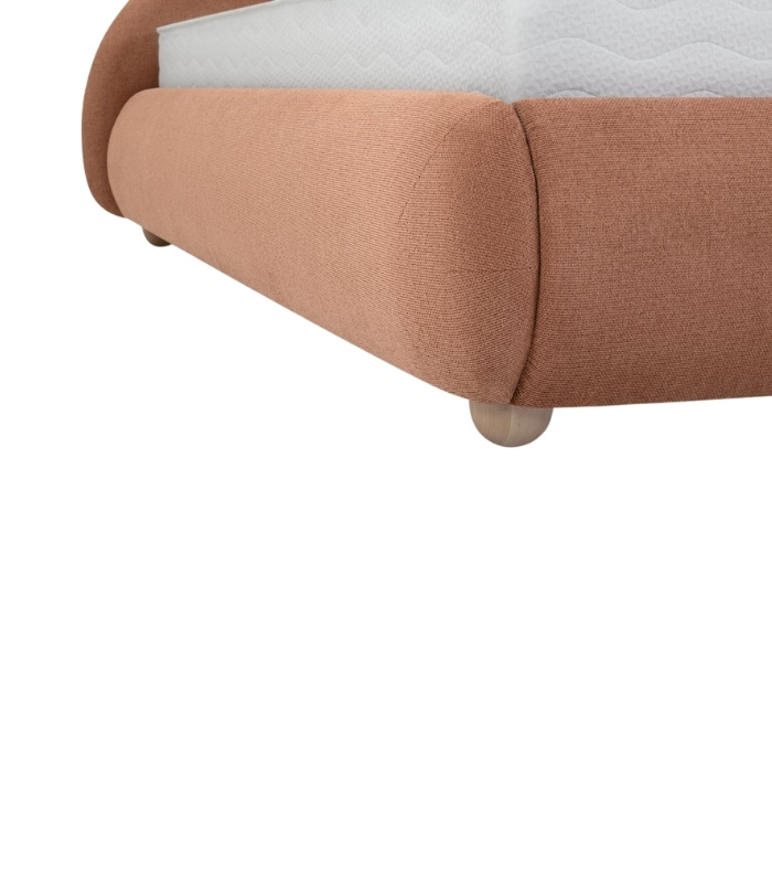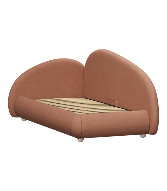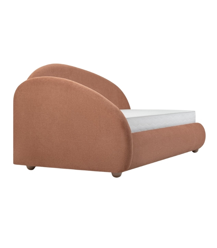 Thiết kế giường nhấn mạnh vào những đường cong lớn, tạo cảm giác mềm mại và an toàn. Phần đầu giường hơi nghiêng vừa phải, giúp tựa lưng thoải mái khi xem phim, đọc sách hay thư giãn. Kiểu dáng tròn trịa này đặc biệt phù hợp cho phòng bé, phòng khách sạn nhỏ hoặc homestay yêu thích nét mộc mạc.