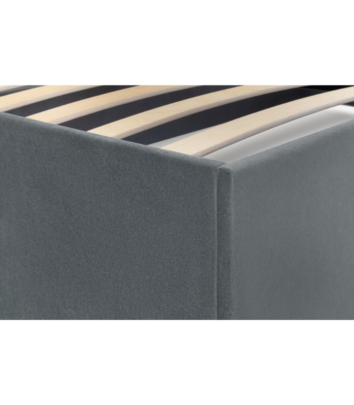 Phần đầu giường được thiết kế với tựa lưng bọc nhung dày dặn, giúp người dùng thoải mái tựa đọc sách, xem phim hoặc thư giãn trước khi ngủ. Khung giường chắc chắn, kết cấu vững vàng, nâng đỡ tốt trong suốt quá trình sử dụng.