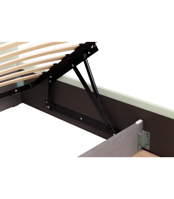 Giường ứng dụng cơ chế nâng hạ, mở khoang chứa đồ phía dưới nhẹ nhàng và không gây tiếng ồn. Khoang chứa rộng rãi giúp giải quyết nhu cầu lưu trữ các vật dụng như chăn ga, gối hoặc đồ dùng cá nhân. Hệ thống nâng hoạt động linh hoạt, rất dễ thao tác với nhiều độ tuổi.