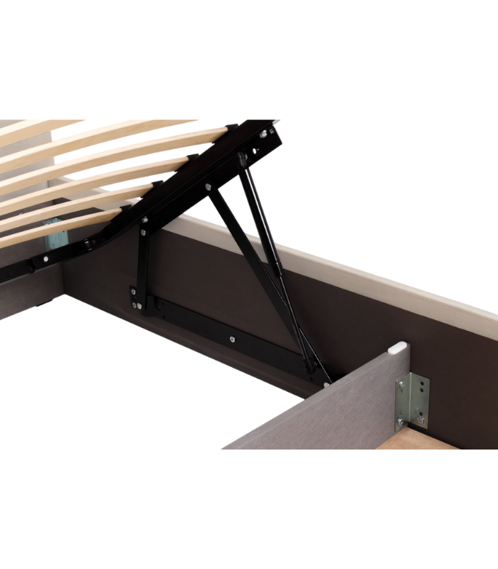 Về công năng, giường được trang bị cơ chế nâng hạ tiện lợi, hỗ trợ mở khoang chứa bên dưới một cách dễ dàng và an toàn. Hệ thống nâng hoạt động êm ái, tiện ích trong sử dụng, không cần dùng nhiều lực. Khoang lưu trữ rộng rãi giúp bạn thoải mái sắp xếp chăn ga, gối, vật dụng ít dùng hoặc đồ theo mùa, tạo sự ngăn nắp cho căn phòng. Không gian lưu trữ này đặc biệt hữu ích cho những căn hộ cần tối ưu hóa diện tích. Khung giường chắc chắn và ổn định giúp nâng đỡ tốt trong suốt quá trình sử dụng.