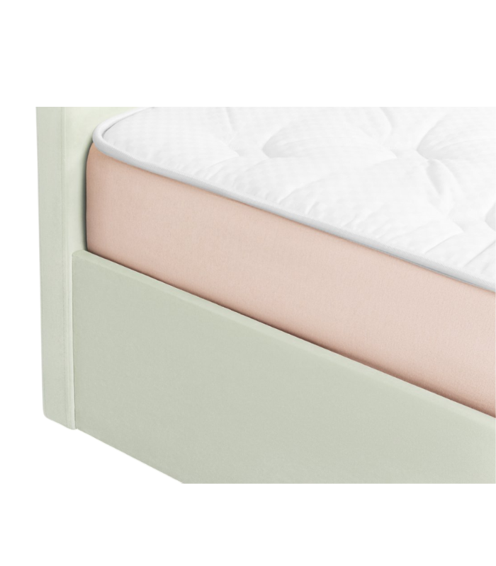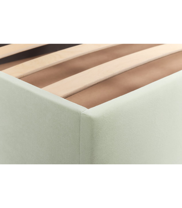 Form giường cân đối, mượt mà từ đầu đến chân tạo nên vẻ đẹp sang mà không phô trương. Nhung Danel màu Milk có độ mịn cao, cho cảm giác chạm mềm và êm. Chất liệu này cũng bền màu, giữ được vẻ đẹp vốn có trong thời gian dài.