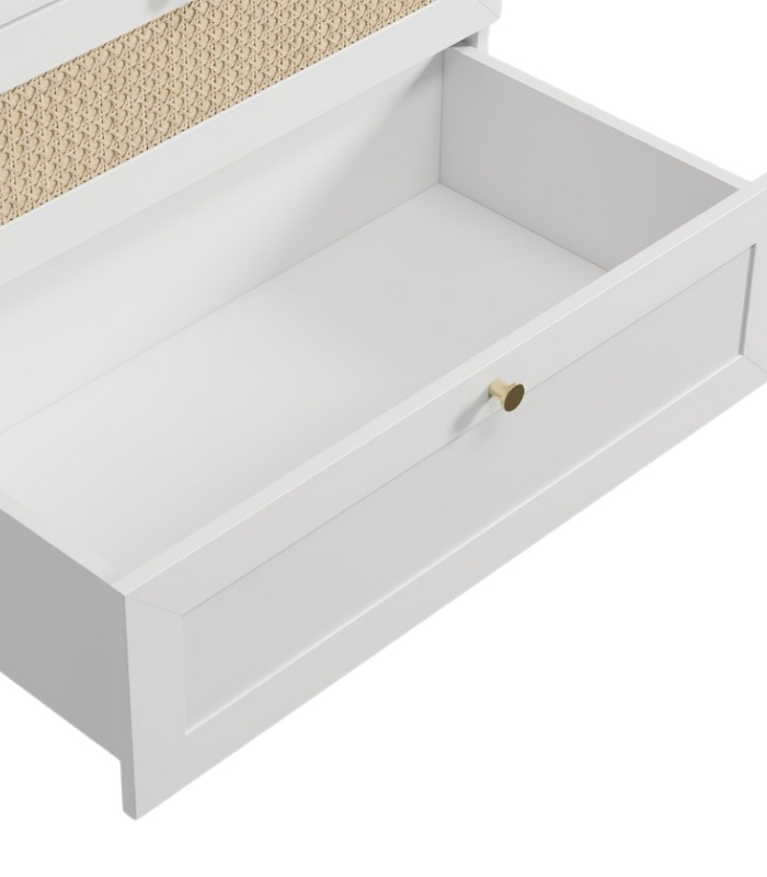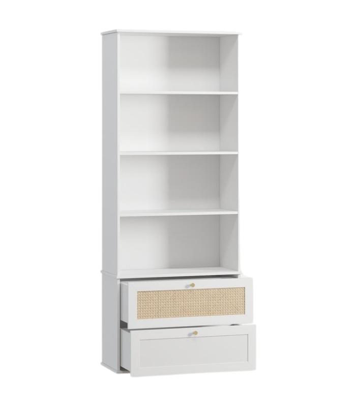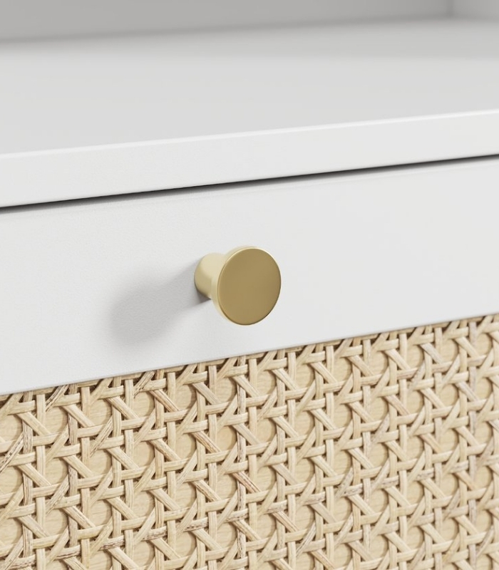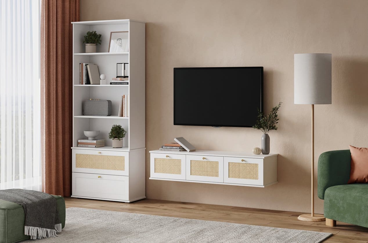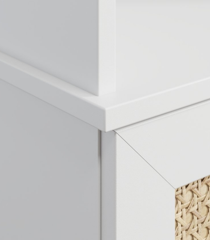Kệ Trang Trí Alvis Trắng – 2 mang đến vẻ cân đối và thanh lịch cho không gian phòng khách hoặc phòng sinh hoạt chung. Thiết kế gồm nhiều tầng mở kết hợp ngăn kéo kín giúp chiếc kệ vừa đảm bảo công năng lưu trữ, vừa giữ được sự thoáng nhẹ, tinh tế trong bố cục tổng thể. Tông trắng trang nhã cùng chi tiết mây tự nhiên khiến sản phẩm dễ dàng hòa hợp với nhiều phong cách nội thất, từ hiện đại, tối giản đến phong cách Bắc Âu ấm áp.
