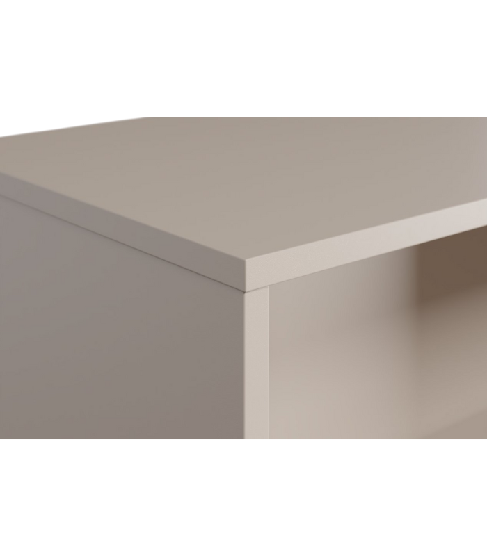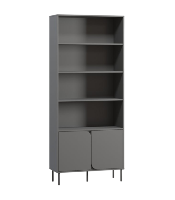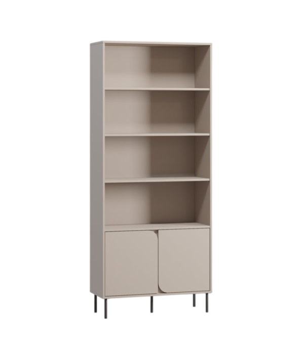 Kệ gồm nhiều tầng mở rộng, thuận tiện để trưng bày sách, vật dụng trang trí, khung ảnh hay những món đồ cá nhân nhỏ, giúp căn phòng luôn gọn gàng và ngăn nắp. Phần dưới được thiết kế với hai cánh tủ đóng, vừa bảo vệ đồ dùng riêng tư, vừa tạo điểm nhấn nhờ cánh sơn PU một mặt tinh tế.