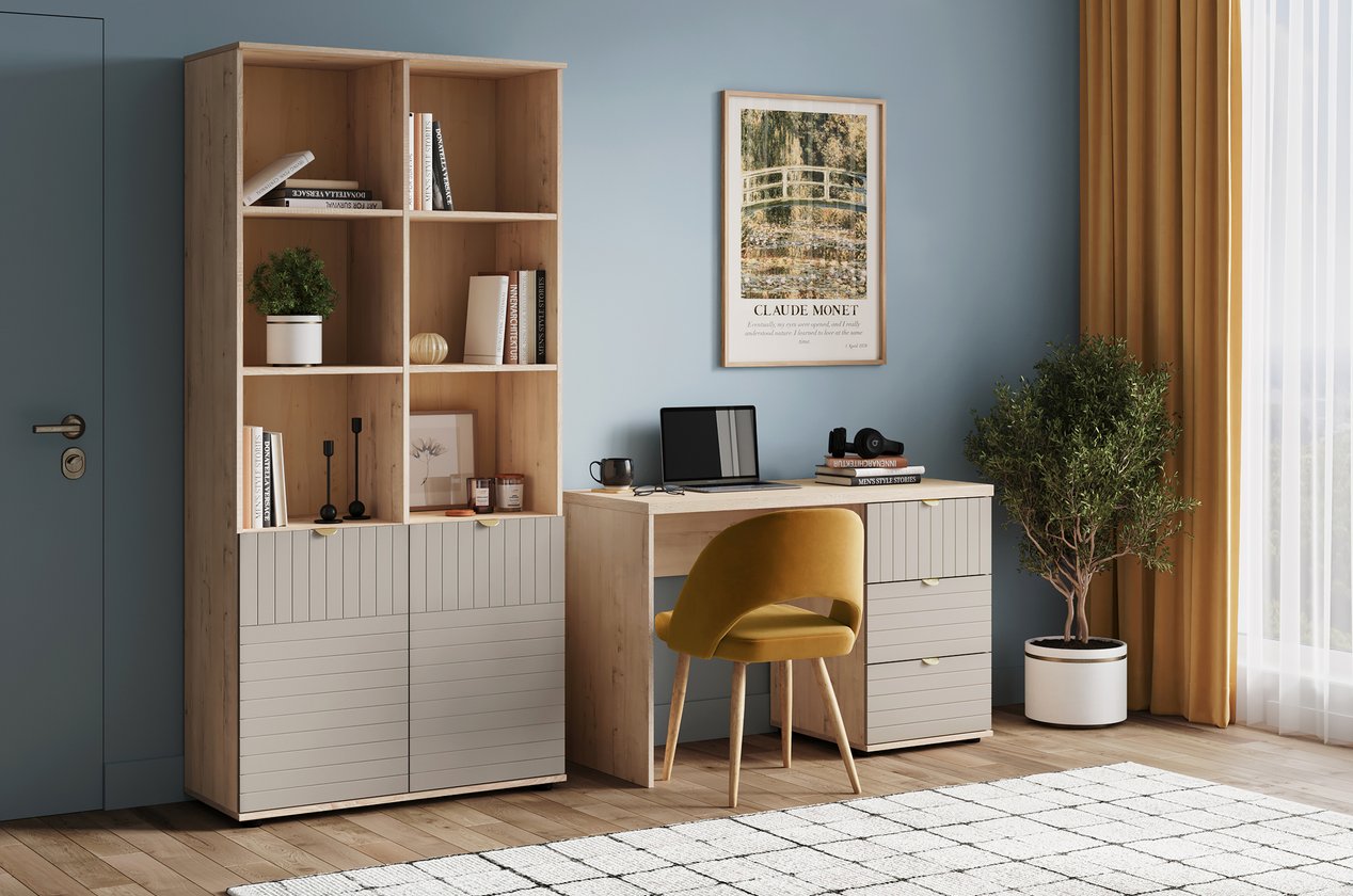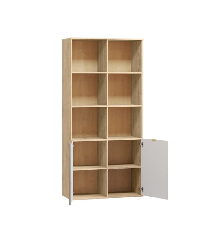 Kích thước 93x40x196 cm gọn gàng, phù hợp với nhiều không gian khác nhau từ phòng khách, phòng ngủ đến văn phòng. Thiết kế kệ gồm nhiều ngăn vuông đối xứng, tạo sự cân bằng thẩm mỹ và tối ưu không gian trưng bày. Các ngăn mở có thể dùng để đặt sách, chậu cây nhỏ, khung ảnh hoặc vật trang trí yêu thích. Phía dưới là hai ngăn tủ cánh mở, giúp lưu trữ gọn gàng các vật dụng cá nhân hoặc tài liệu cần thiết. Cánh tủ đóng mở êm ái, mang đến trải nghiệm sử dụng nhẹ nhàng và tinh tế.