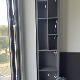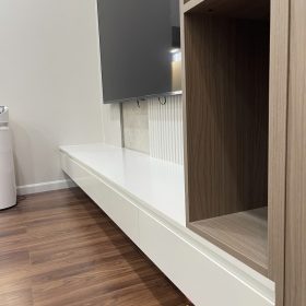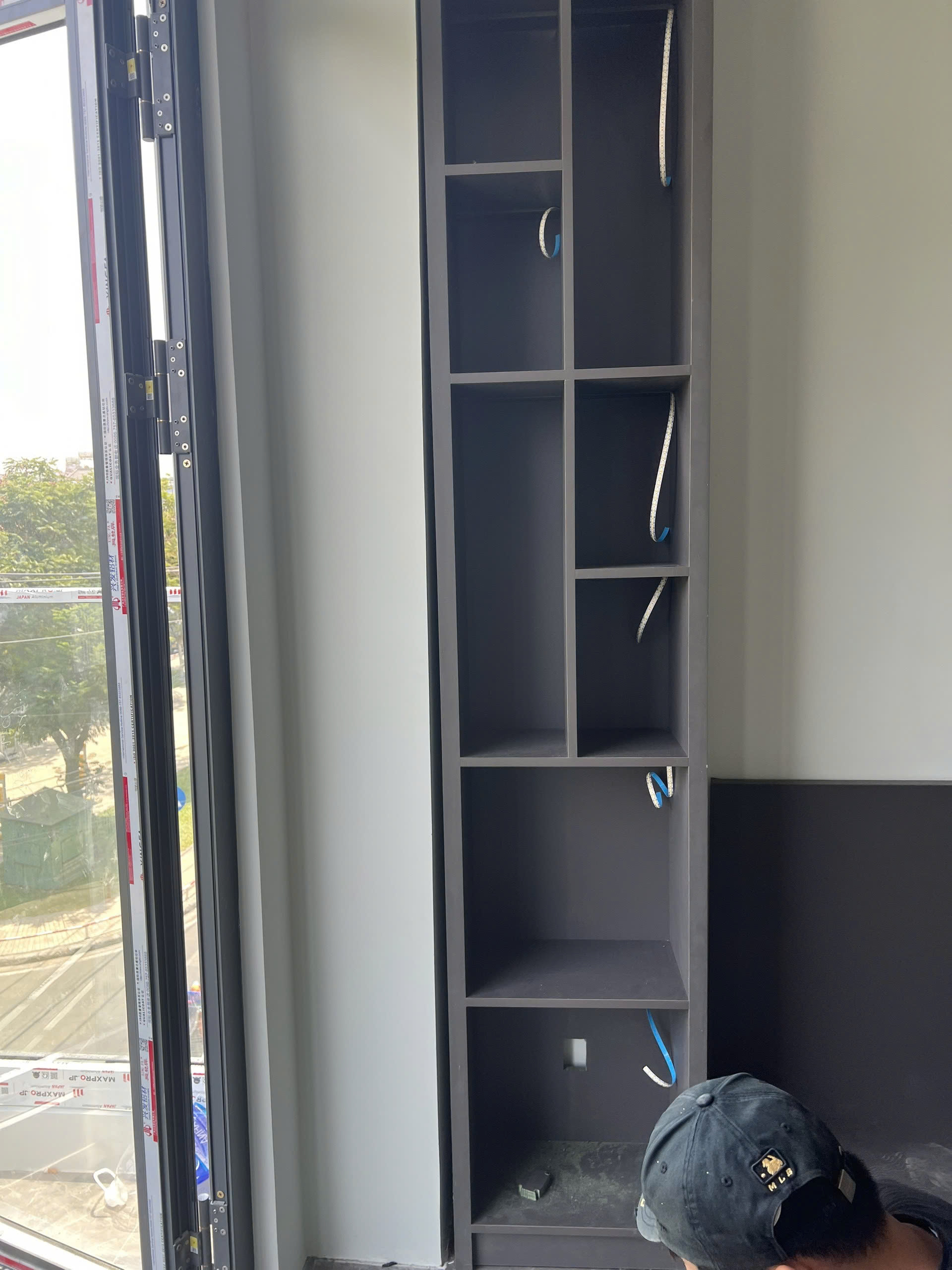 Kệ màu cà phê sữa nhìn rất sang và dễ phối với nội thất. Đội thi công làm nhanh, tư vấn kỹ từ lúc chọn mẫu đến lắp đặt.