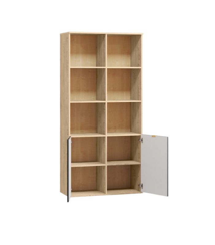 Kích thước 93x40x196 cm, vừa vặn cho nhiều không gian như phòng khách, phòng làm việc hoặc phòng ngủ. Thiết kế kệ gồm nhiều ngăn vuông đều nhau, cho phép trưng bày sách, đồ lưu niệm, lọ hoa hoặc vật trang trí. Phần dưới có hai ngăn tủ cánh mở, giúp giấu gọn những vật dụng cá nhân hoặc đồ dùng ít sử dụng. Cánh tủ đóng mở êm ái, mang lại trải nghiệm sử dụng tiện nghi và hiện đại. Mặt ngoài cánh tủ được trang trí hoa văn tinh tế, tạo điểm nhấn sang trọng và đồng điệu với bộ sưu tập Mont Blanc.