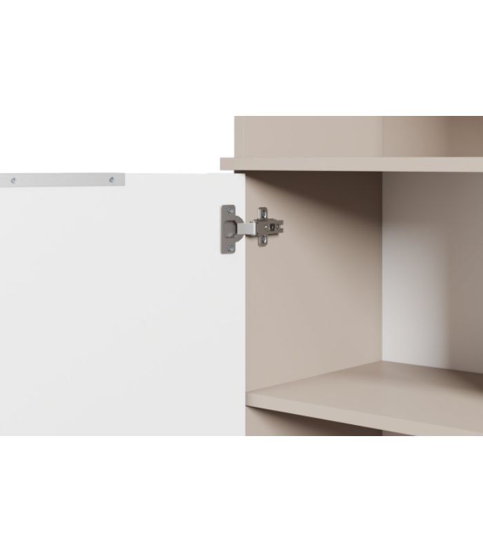 Kích thước 99x36x190cm giúp kệ đứng vững, cao thoáng nhưng vẫn gọn gàng. Phần dưới có tủ 2 cánh với các ngăn kệ bên trong, tiện để cất đồ kín đáo. Phần trên là các ngăn kệ mở lý tưởng để trưng bày đồ decor, sách, nến thơm và nhiều vật dụng yêu thích. Gam cà phê sữa ấm áp tạo nên không gian gần gũi và sang nhẹ nhàng. Màu sắc dễ phối với nội thất gỗ nâu, gỗ sáng hoặc phong cách vintage – hiện đại.