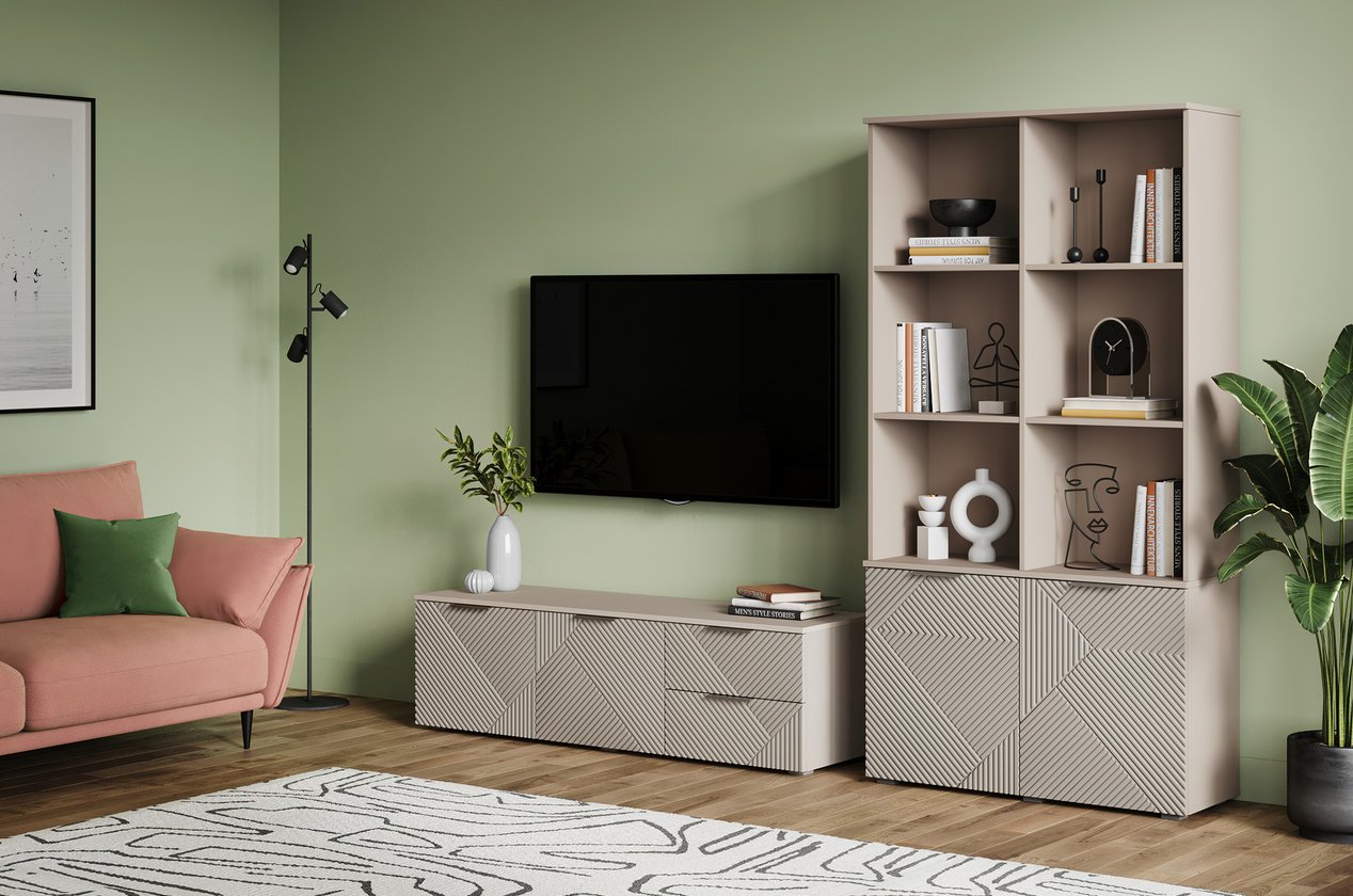 Kệ Trang Trí Shelton Cà Phê Sữa – 2 mang đến cảm giác ấm áp, nhẹ nhàng và rất dễ chịu cho không gian sống. Sản phẩm sử dụng gỗ MDF phủ Melamine chống ẩm, bền bỉ và phù hợp với khí hậu nóng ẩm Việt Nam. Cánh tủ sơn PU 1 mặt cho độ bóng nhẹ và tăng tính thẩm mỹ.