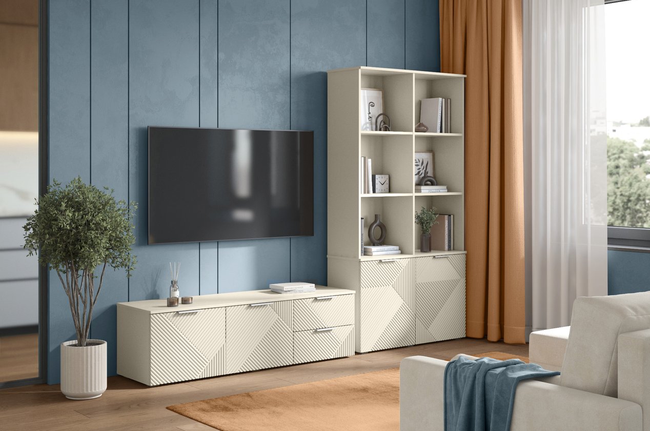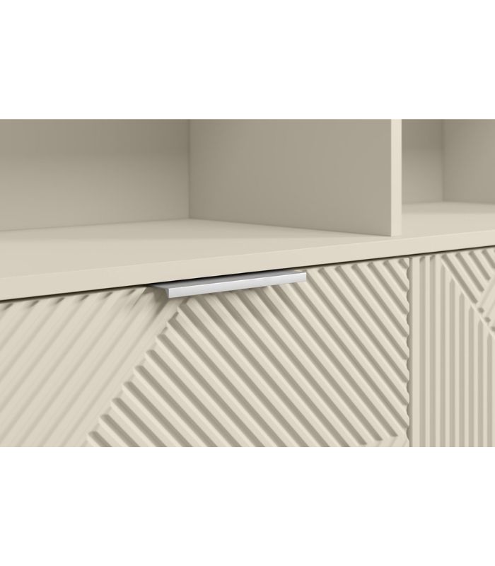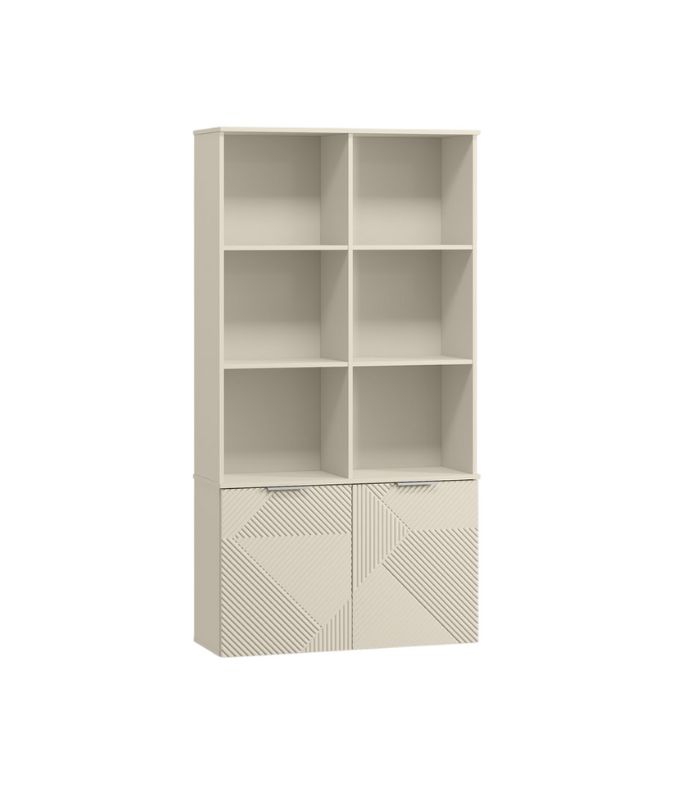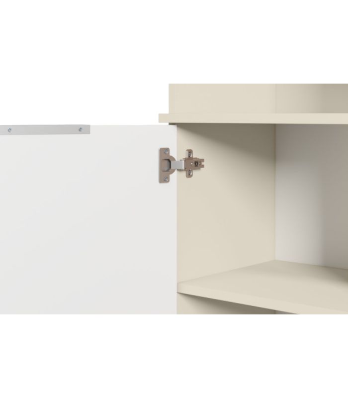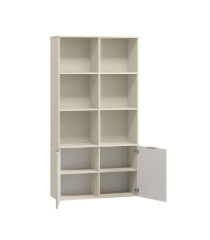 Kích thước 99x36x190cm cân đối, không chiếm diện tích nhưng vẫn tối ưu công năng. Phần dưới gồm tủ 2 cánh, chia nhiều ngăn bên trong để chứa đồ gọn gàng. Phần trên là hệ kệ mở phù hợp trưng bày decor, cây nhỏ, sách hoặc phụ kiện trang trí. Tone trắng kem mang lại cảm giác dịu mắt hơn trắng thuần, tạo không gian mềm mại và ấm áp.