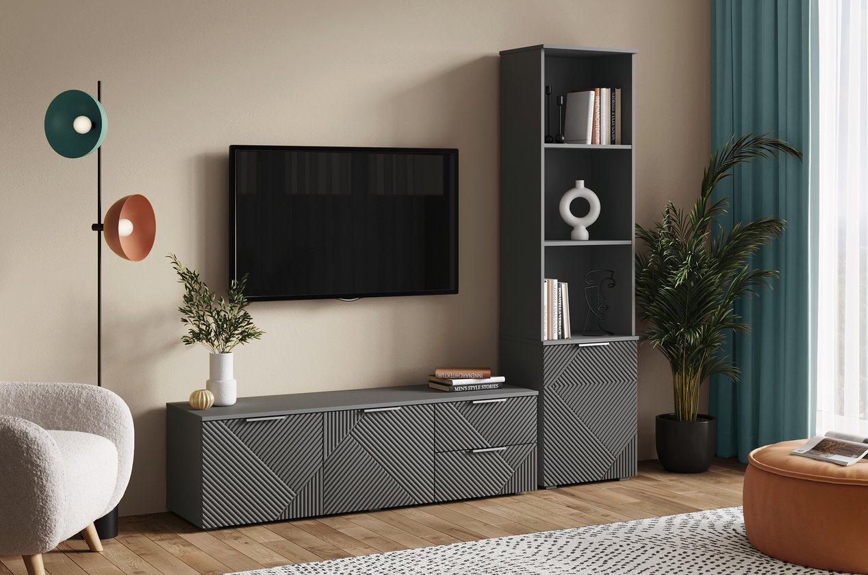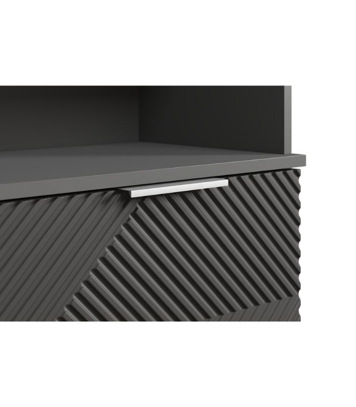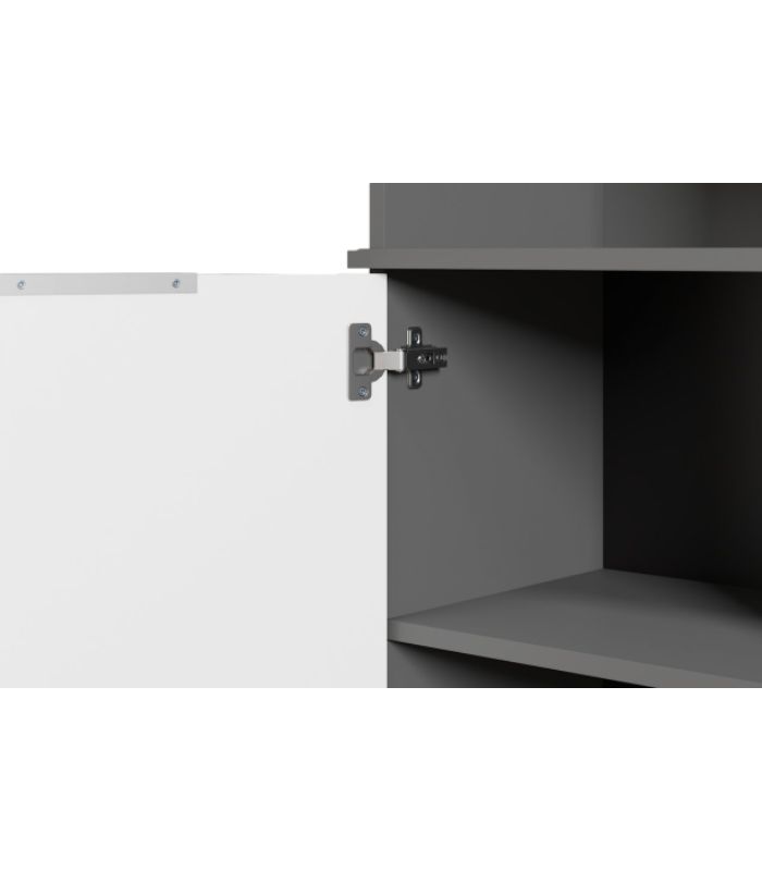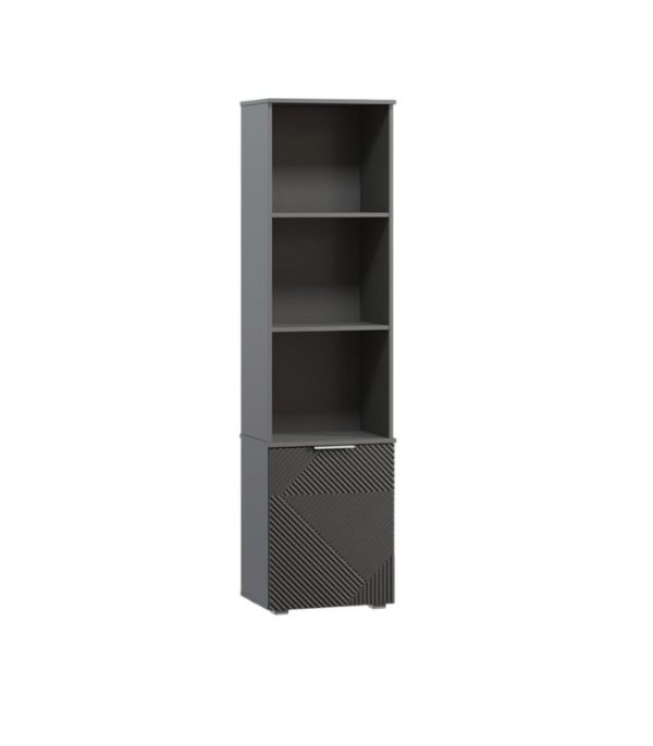 Kệ Trang Trí Shelton Xám Chì – 1 mang phong cách hiện đại, mạnh mẽ và đầy cá tính. Chất liệu MDF phủ melamine chống ẩm giúp kệ bền bỉ, hạn chế trầy xước và dễ vệ sinh. Cánh dưới được sơn PU 1 mặt, cho bề mặt mịn và giữ màu lâu dài.