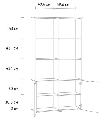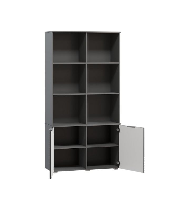 Kích thước 99x36x190cm vừa vặn, gọn gàng nhưng vẫn chứa được nhiều đồ. Phần dưới gồm tủ 2 cánh với các ngăn bên trong giúp giấu đồ gọn gàng. Phần trên là các ngăn kệ mở, lý tưởng để trưng bày vật decor mang phong cách cá tính.