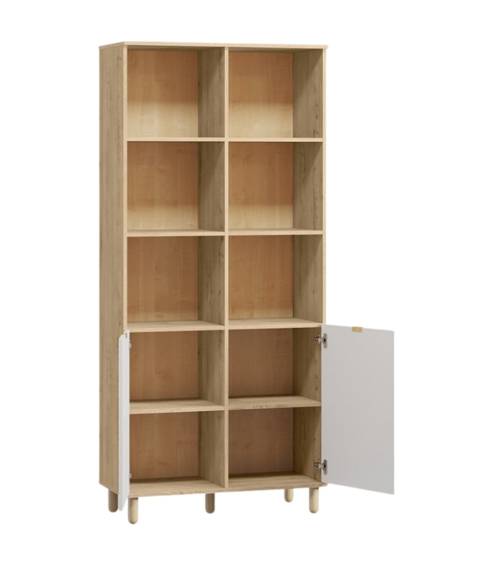 Bố cục các ngăn cho phép người dùng vừa trưng bày đồ decor, vừa lưu trữ vật dụng cần thiết một cách gọn gàng. Thiết kế chân gỗ thanh mảnh không chỉ tăng độ bền mà còn mang lại cảm giác nhẹ nhàng, tinh tế cho tổng thể.