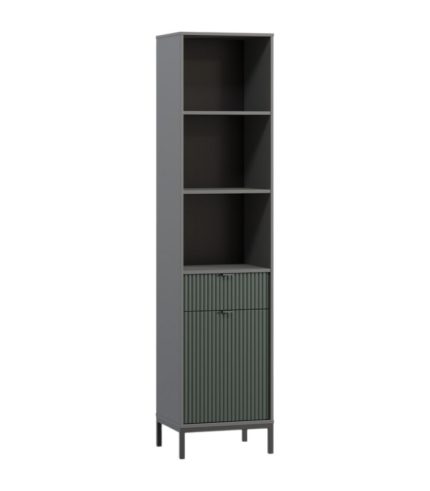 Với kích thước 48x40x205 cm, Kệ Trang Trí Travis Xám Chì được thiết kế cao và gọn, giúp tận dụng tối đa không gian theo chiều dọc mà vẫn giữ được nét thanh thoát. Bố cục gồm ba ngăn mở tiện cho việc trưng bày sách, phụ kiện decor hay khung ảnh; kết hợp cùng một ngăn kéo nhỏ và một cánh tủ kín bên dưới có hai ngăn bên trong, giúp bạn dễ dàng sắp xếp và lưu trữ đồ dùng một cách ngăn nắp.