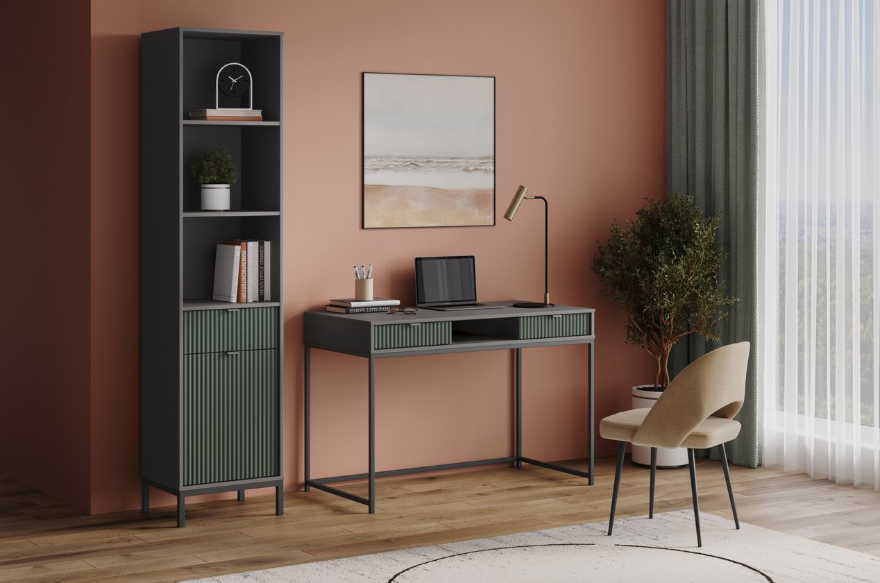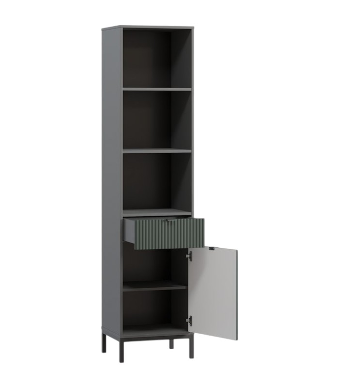 Với kích thước 48x40x205 cm, chiếc kệ được thiết kế cao, thanh mảnh, giúp tận dụng tối đa diện tích theo chiều dọc mà không gây cảm giác nặng nề. Ba ngăn mở thuận tiện cho việc trưng bày sách, đồ trang trí hay vật lưu niệm, đi cùng một ngăn kéo nhỏ và một cánh tủ kín bên dưới chia thành hai ngăn – mang đến giải pháp lưu trữ linh hoạt, cân bằng giữa thẩm mỹ và công năng.
