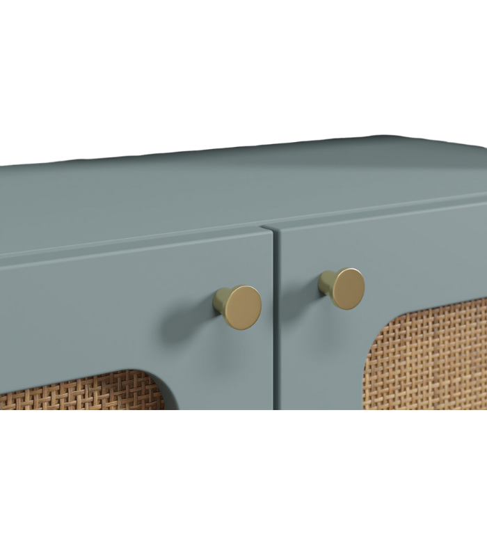 Phía dưới là hai cánh tủ đóng dạng giả mây, vừa tạo điểm nhấn tự nhiên, vừa giúp giấu gọn đồ dùng cá nhân, giữ cho không gian luôn gọn gàng, sạch sẽ.