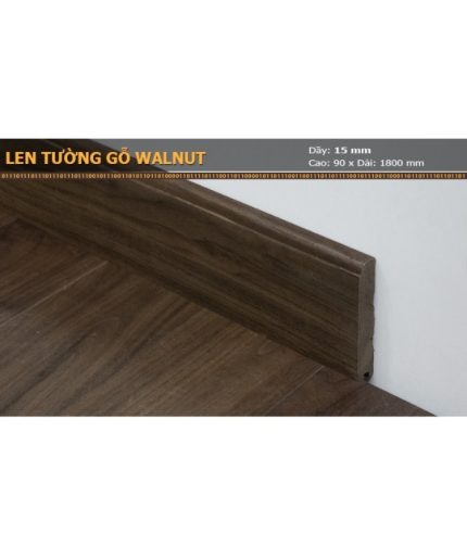 Len tường gỗ óc chó là phụ kiện hoàn thiện nội thất cao cấp, giúp che khe hở giữa sàn và tường, đồng thời bảo vệ chân tường khỏi va đập, ẩm mốc và trầy xước trong quá trình sử dụng. Sản phẩm được làm từ gỗ óc chó tự nhiên, nổi bật với gam nâu socola – đen trầm sang trọng cùng hệ vân gỗ cuộn xoáy độc đáo, tạo điểm nhấn tinh tế cho không gian sống.
