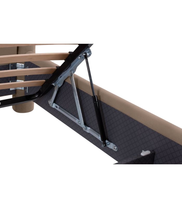 Giường tích hợp cơ chế nâng hạ tiện lợi, tối ưu không gian lưu trữ. Khoang chứa đồ rộng, giúp phòng ngủ luôn gọn gàng. Cơ chế nâng hạ vận hành êm ái. Kích thước 220 x 180 x 95 cm, phù hợp cho nệm 1m6. Đầu giường bọc vải dày, tạo cảm giác êm ái khi tựa lưng. Thiết kế bo cạnh giúp tăng độ an toàn.