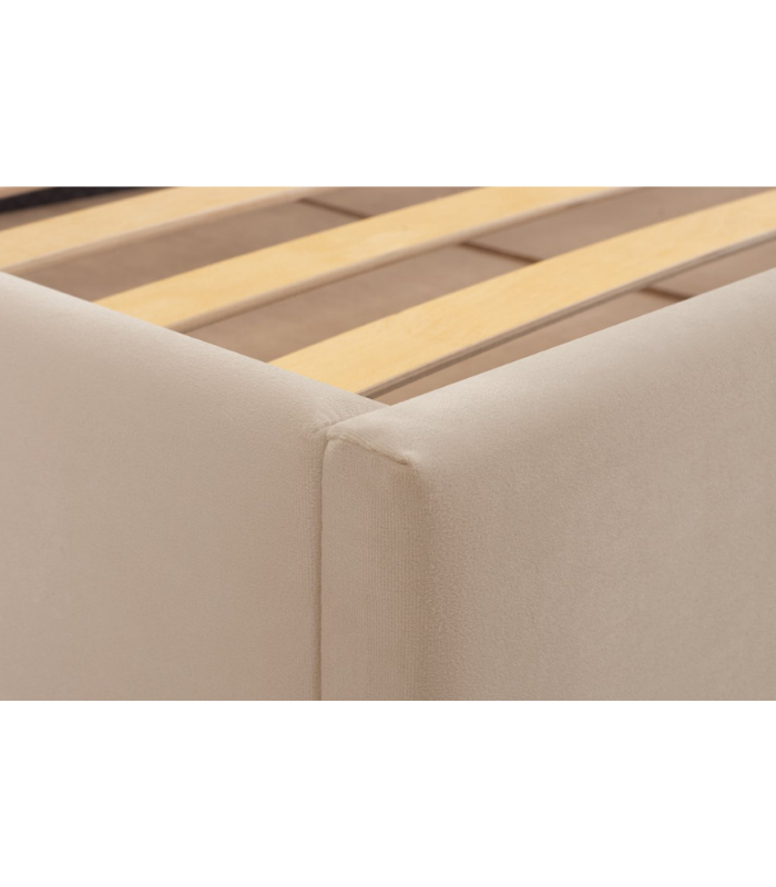 Sản phẩm sử dụng chất liệu nhung mềm mịn, bề mặt êm tay và tạo cảm giác dễ chịu khi tiếp xúc. Lớp nhung giúp tăng tính thẩm mỹ, đồng thời hạn chế cảm giác lạnh khi sử dụng. Khung giường được hoàn thiện chắc chắn, đảm bảo độ ổn định trong quá trình sử dụng lâu dài. Chân giường cao vừa phải giúp tổng thể giường thông thoáng và thuận tiện cho việc vệ sinh.