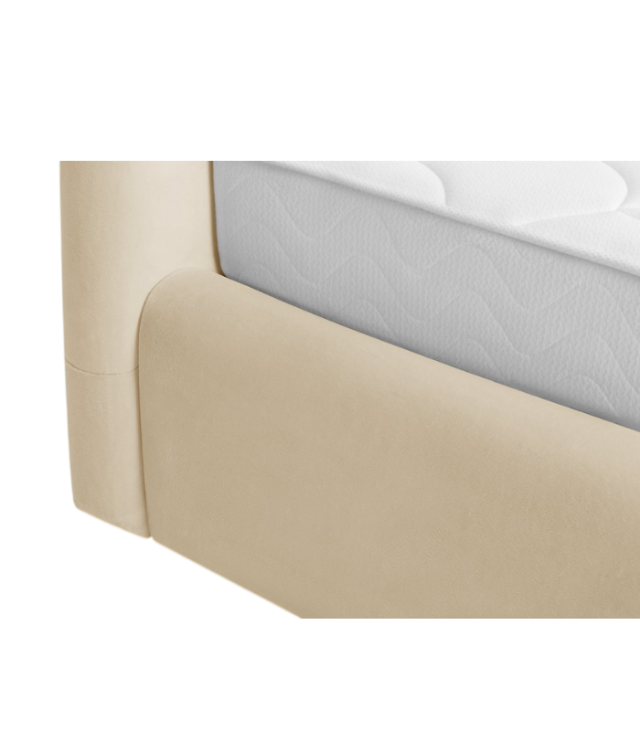 Giường Kevia Nhung 200 Bunny Milk sở hữu thiết kế mềm mại với các đường bo tròn tinh tế, mang lại cảm giác dễ chịu ngay từ ánh nhìn đầu tiên. Toàn bộ bề mặt giường được bọc nhung cao cấp, tạo cảm giác êm ái và mịn màng khi sử dụng. Chất liệu nhung giúp sản phẩm giữ được vẻ đẹp bền bỉ theo thời gian. Gam màu Bunny Milk là sắc trắng sữa pha kem nhạt, nhẹ nhàng và tinh khiết. Màu sắc này mang lại cảm giác sạch sẽ, thư giãn và rất dễ phối với nội thất phòng ngủ. Tông màu sáng giúp không gian trở nên thoáng đãng và rộng rãi hơn.