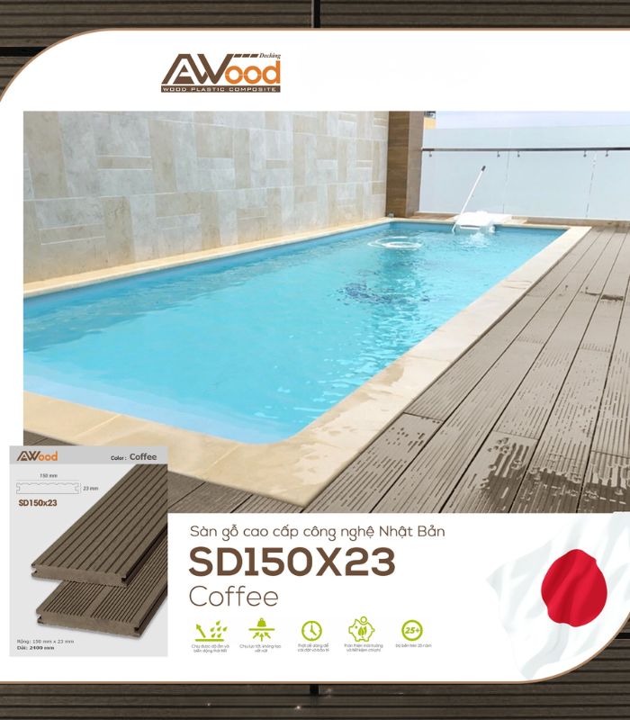 Sàn Gỗ Ngoài Trời AWood SD150x23 Coffee