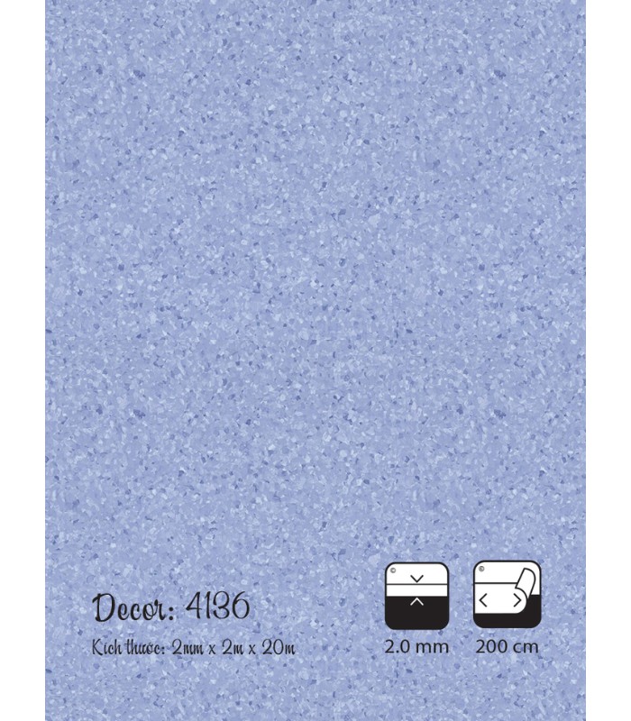 Đơn vị tính: m², quy cách cuộn 20m x 2m x 2mm, diện tích 40m²/cuộn, phù hợp thi công cho nhiều công trình như bệnh viện, trường học, văn phòng.