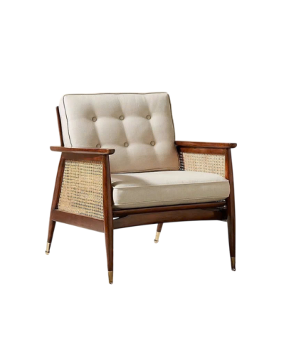 Sofa Nadia Armchair là mẫu ghế đơn mang phong cách hiện đại và thanh lịch, phù hợp với nhiều không gian nội thất khác nhau. Sản phẩm có kích thước 720x750x450, tạo sự cân đối và gọn gàng khi bố trí. Khung ghế được làm từ gỗ ash tự nhiên, đảm bảo độ bền chắc và khả năng chịu lực tốt. Vân gỗ ash đẹp mắt góp phần tạo nên vẻ sang trọng cho tổng thể sản phẩm. Kết cấu khung được gia công cẩn thận, giúp ghế luôn ổn định trong quá trình sử dụng lâu dài. Phần lưng ghế được đan mây nhân tạo tinh xảo, tạo điểm nhấn thẩm mỹ nhẹ nhàng.