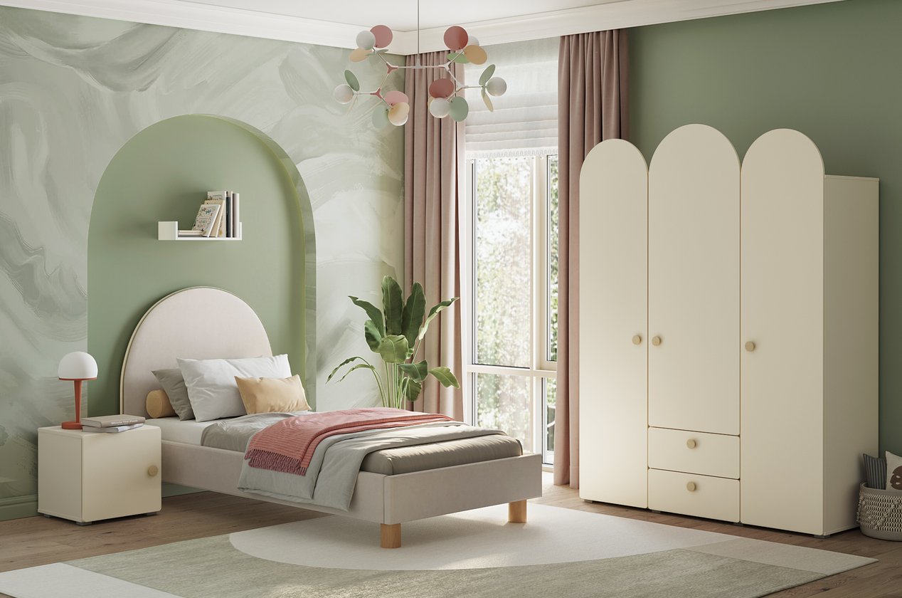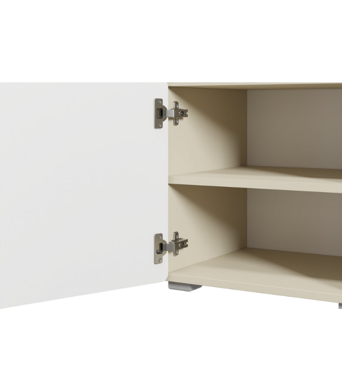 Gam trắng kem nhẹ nhàng, dễ phối hợp với nhiều phong cách nội thất khác nhau, từ tối giản đến ấm cúng. Thiết kế tay nắm âm tinh tế, mang đến tổng thể gọn gàng và hiện đại.