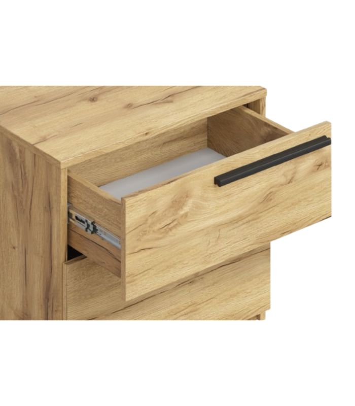 Tủ đầu giường Kimball Màu Gỗ Sồi – 1 mang vẻ đẹp tự nhiên, mộc mạc nhưng vẫn hiện đại và tinh tế. Sản phẩm sử dụng MDF phủ melamine vân gỗ sồi, giúp bề mặt giống gỗ thật nhưng bền hơn và chống ẩm hiệu quả.