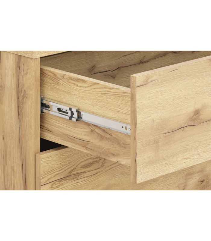 Lớp melamine giúp tủ chống trầy, chống thấm và dễ vệ sinh, rất lý tưởng cho môi trường sinh hoạt hàng ngày. Kết cấu tủ chắc chắn, đường nét tối giản nhưng tinh tế, tạo điểm nhấn ấm áp cho không gian ngủ.