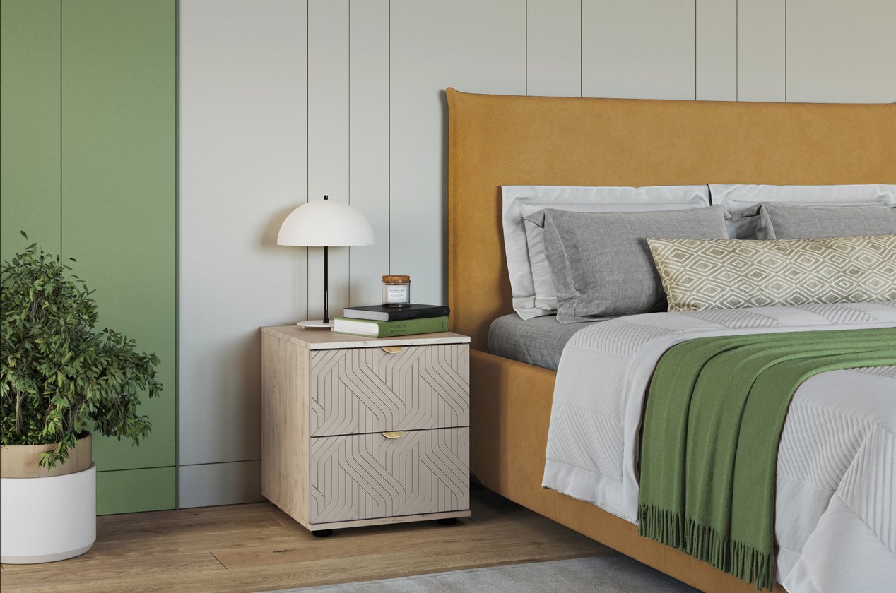 Kích thước 47x50x53 cm tối ưu, dễ dàng bố trí cạnh giường mà không chiếm nhiều diện tích. Thiết kế 2 ngăn kéo rộng rãi, giúp lưu trữ đồ dùng cá nhân như sách, điện thoại, mắt kính hay vật dụng nhỏ gọn một cách ngăn nắp. Mặt trên tủ được trang trí các vân tinh tế, vừa nâng cao giá trị thẩm mỹ, vừa tạo điểm nhấn hiện đại cho căn phòng. Màu Cà Phê Sữa ấm áp, dễ kết hợp với nhiều tông màu nội thất, mang lại cảm giác thư giãn và sang trọng.