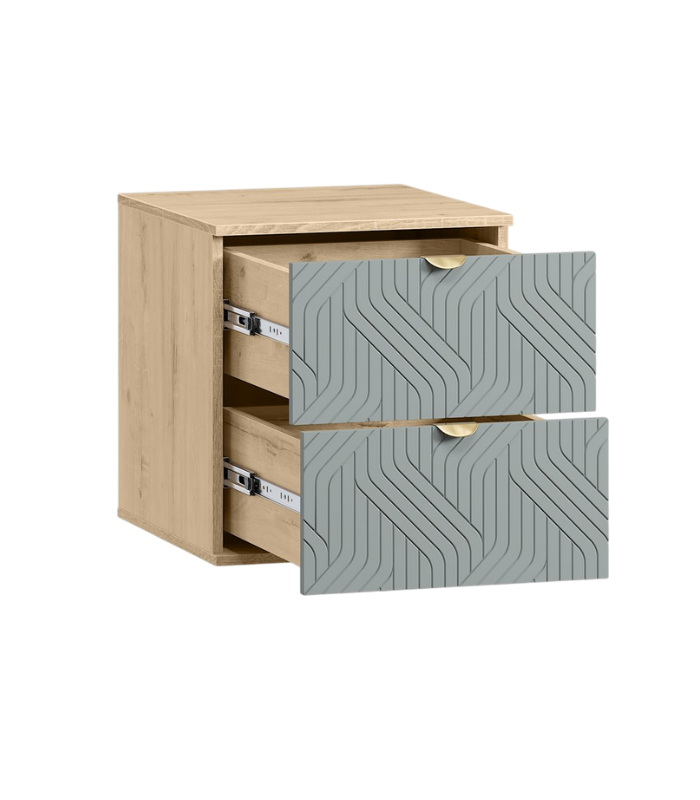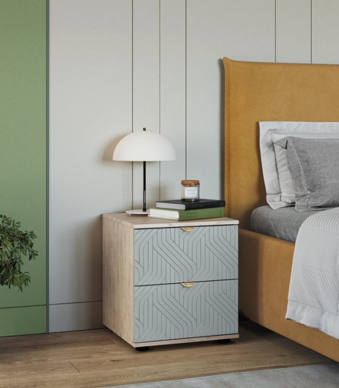 Kích thước 47x50x53 cm tối ưu, vừa vặn với nhiều kiểu giường và không gian nhỏ. Thiết kế 2 ngăn kéo rộng rãi, giúp lưu trữ sách, điện thoại, vật dụng cá nhân ngăn nắp và tiện lợi. Mặt trên tủ trang trí các vân tinh tế, tạo điểm nhấn hiện đại và sang trọng. Màu Xanh Dương Nhạt dịu mắt, mang đến cảm giác thư giãn, thanh thoát và dễ kết hợp với nội thất khác.