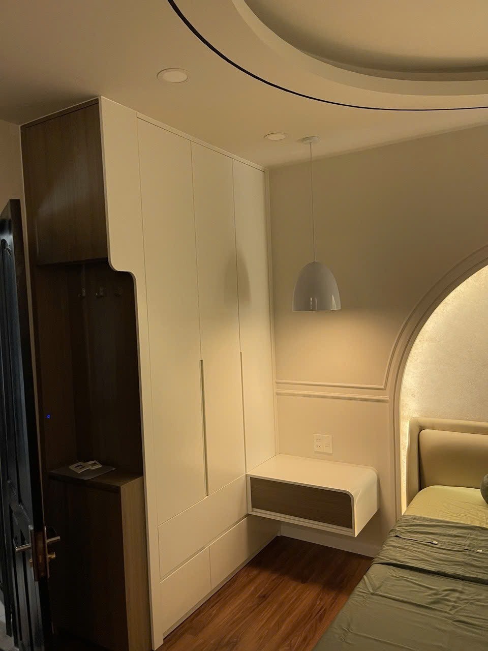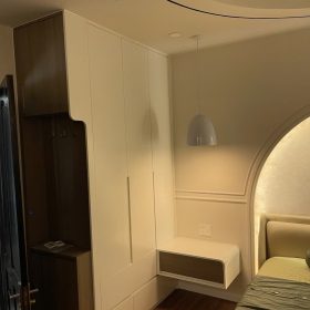 Tủ thiết kế đơn giản nhưng đặt trong phòng ngủ nhìn rất mát và sáng. Thời gian thi công nhanh hơn dự kiến