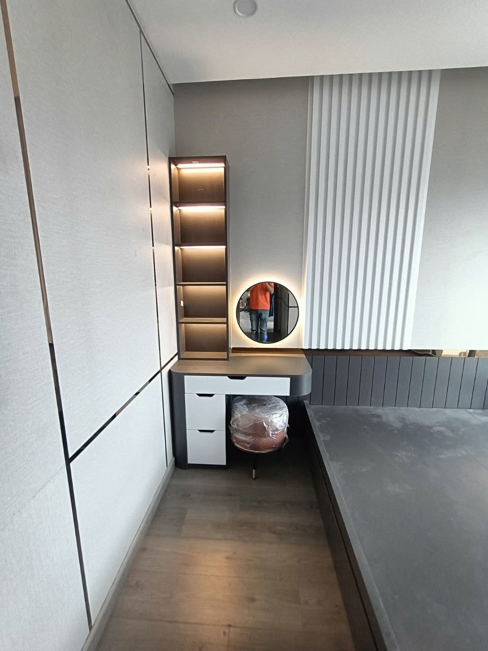 Tủ đầu giường nhìn hợp với phong cách phòng ngủ hiện đại. Đội thi công làm nhanh, thái độ rất lịch sự.