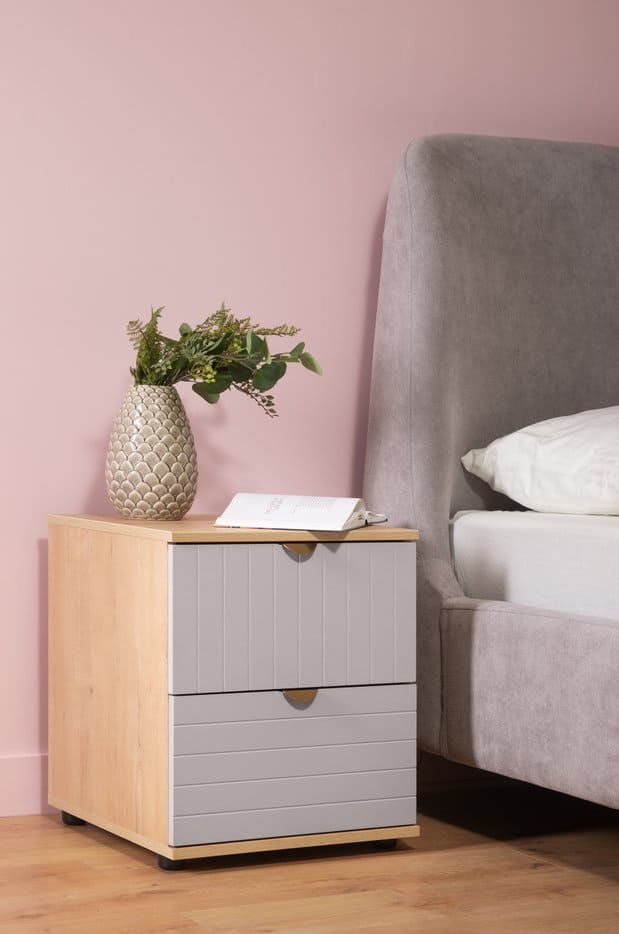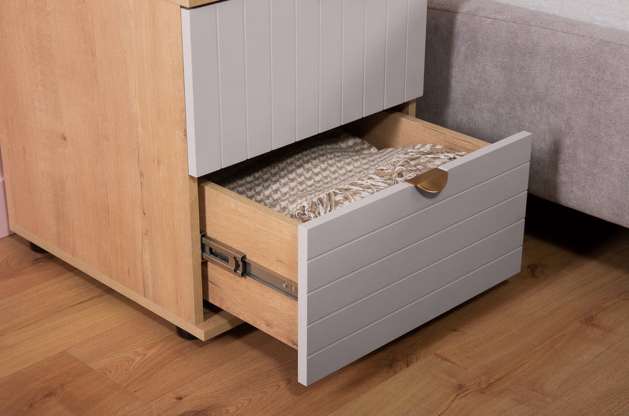 Kích thước 47×50×53 cm giúp tủ cân đối khi đặt cạnh giường ngủ hoặc trong các góc nhỏ cần lưu trữ. Hai ngăn kéo được thiết kế rộng rãi, thích hợp để cất tài liệu, phụ kiện cá nhân hoặc những vật dụng cần giấu gọn. Ray kéo chắc chắn, hoạt động êm ái và bền theo thời gian.