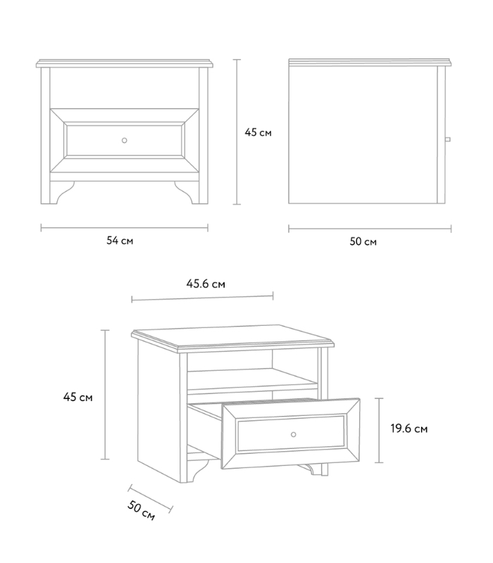 Kích thước 54x50x45cm được tối ưu cho việc đặt cạnh giường, đi kèm một ngăn kéo rộng và một ngăn mở giúp lưu trữ vật dụng cá nhân thật gọn gàng.