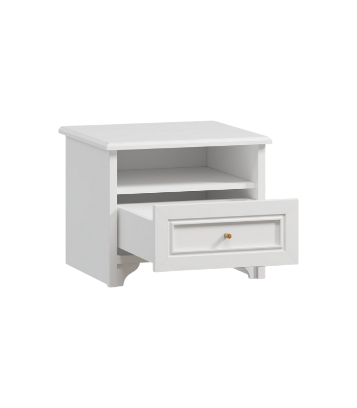 Kích thước 54x50x45cm được tối ưu cho việc đặt cạnh giường, đi kèm một ngăn kéo rộng và một ngăn mở giúp lưu trữ vật dụng cá nhân thật gọn gàng.