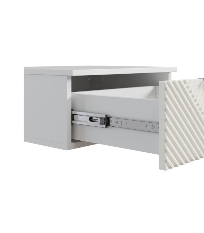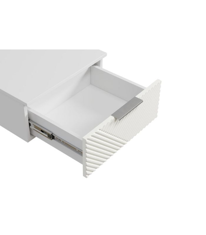 Thiết kế 1 ngăn kéo giúp cất giữ các vật dụng cá nhân như sạc, mỹ phẩm, sách… ngăn nắp và kín đáo. Tông trắng mang lại cảm giác thuần khiết, sáng sủa và làm căn phòng trông rộng hơn.