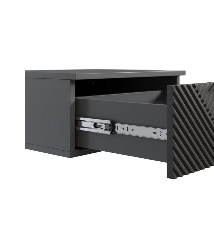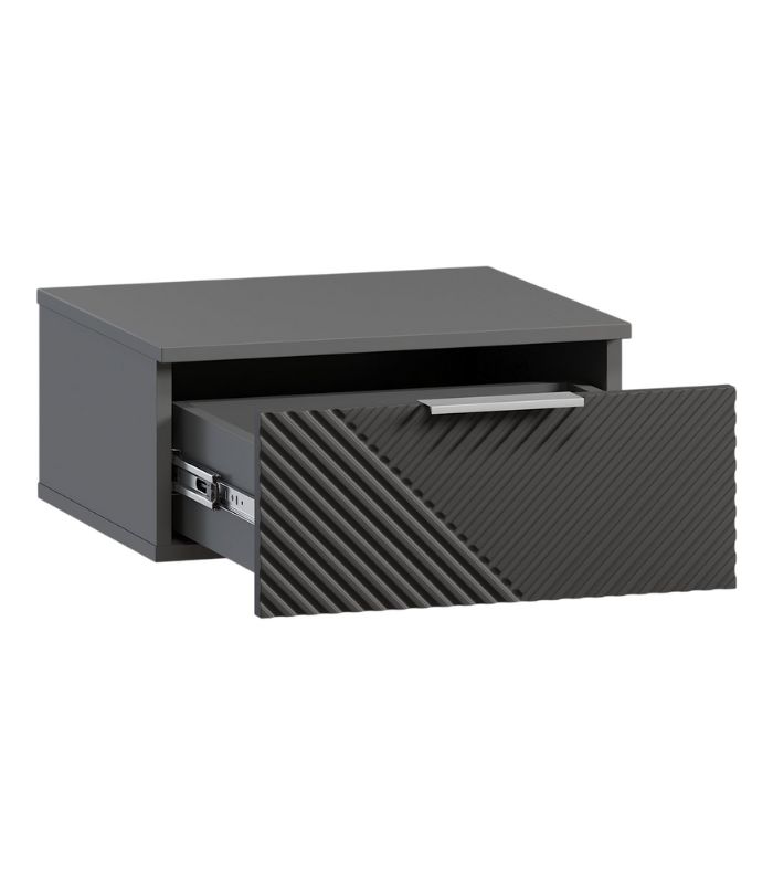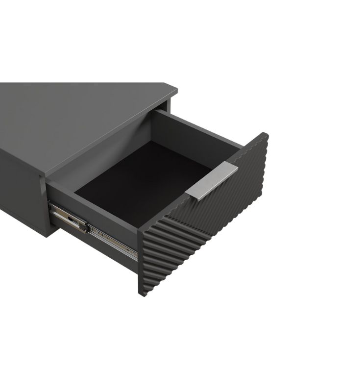 Tủ Đầu Giường Shelton Xám Chì – 1 mang nét đẹp hiện đại, cá tính và đầy chiều sâu. Sản phẩm được làm từ MDF phủ melamine chống ẩm, chắc chắn và bền theo thời gian. Cánh tủ sơn PU 1 mặt mang lại màu xám chì sắc nét, mịn và rất sang.