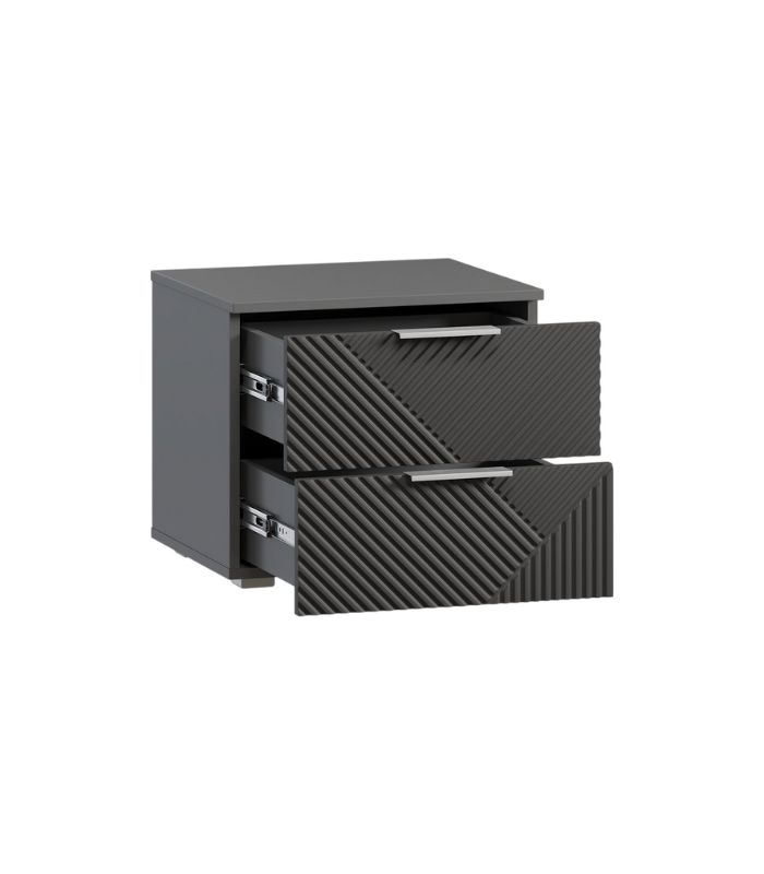 Kích thước 50x42x44cm phù hợp cho đa dạng bố cục phòng ngủ. Hai ngăn kéo được thiết kế rộng rãi, đáp ứng nhu cầu lưu trữ đồ cá nhân. Màu xám chì mang tính thời thượng, mang lại chiều sâu và sự cá tính cho không gian. Tone xám phù hợp phong cách tối giản, hiện đại hoặc hơi hướng industrial. Bề mặt melamine dễ lau chùi, ít bám dấu tay và rất sạch sẽ. Ray trượt hoạt động êm, bền và ít bị kẹt.
